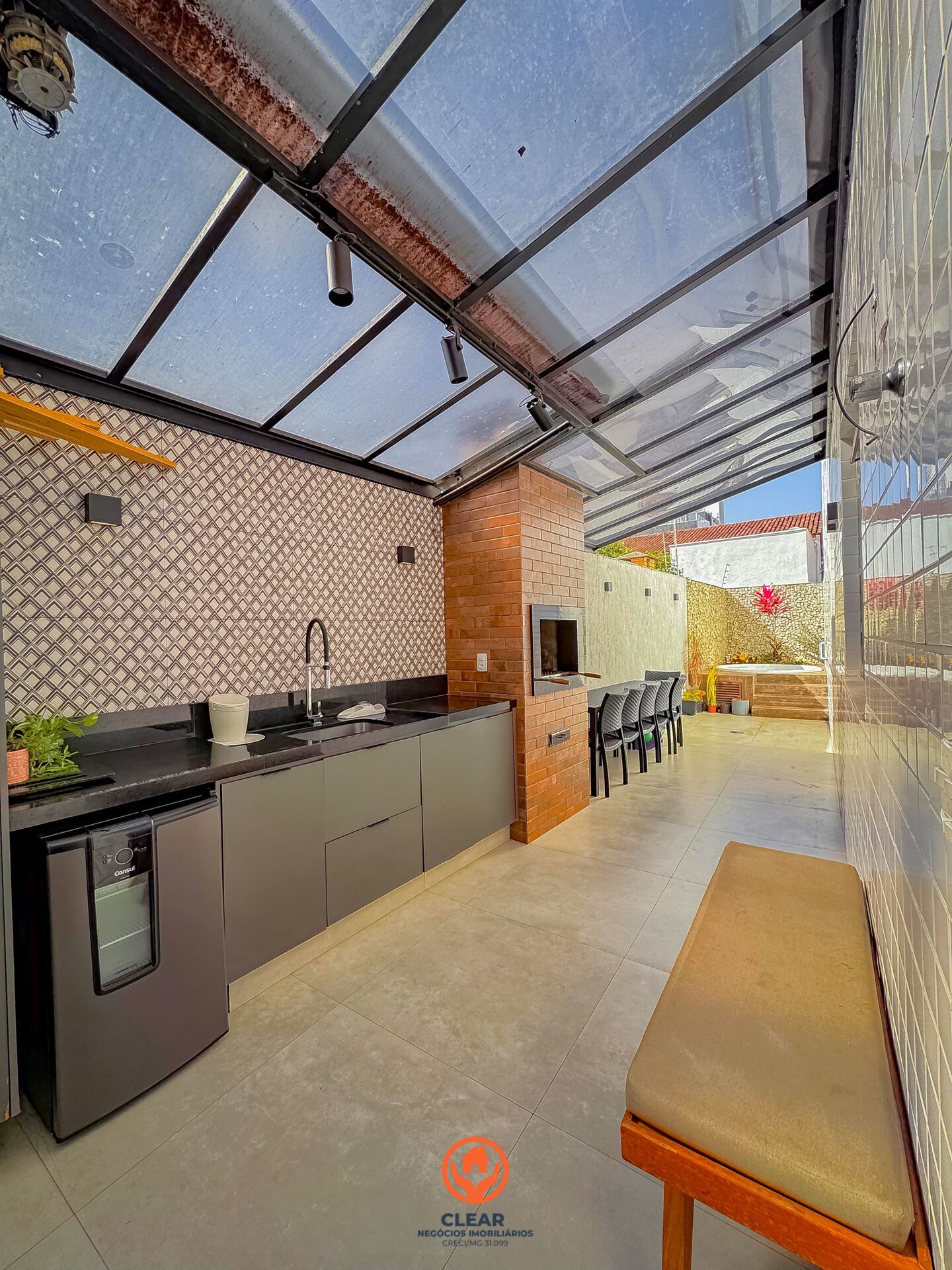 Área privativa externa com teto retrátil automatizado, churrasqueira, bancadas em granito, lavabo, área de serviço e jacuzzi.